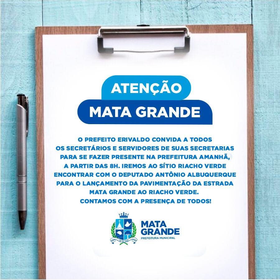 convite foi publicado nas redes sociais oficiais da prefeitura de Mata Grande,