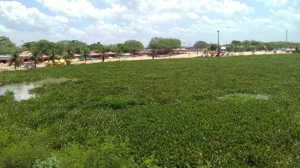 manhã desta quarta-feira (14), uma grande quantidade da planta aquática