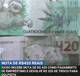 idoso, de 75 anos, recebeu uma nota de R$ 420 como pagamento de um empréstimo