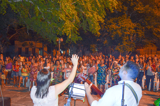 praça da matriz ficou lotada e juntas as mulheres cantaram as músicas dos