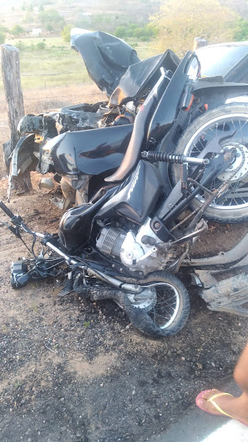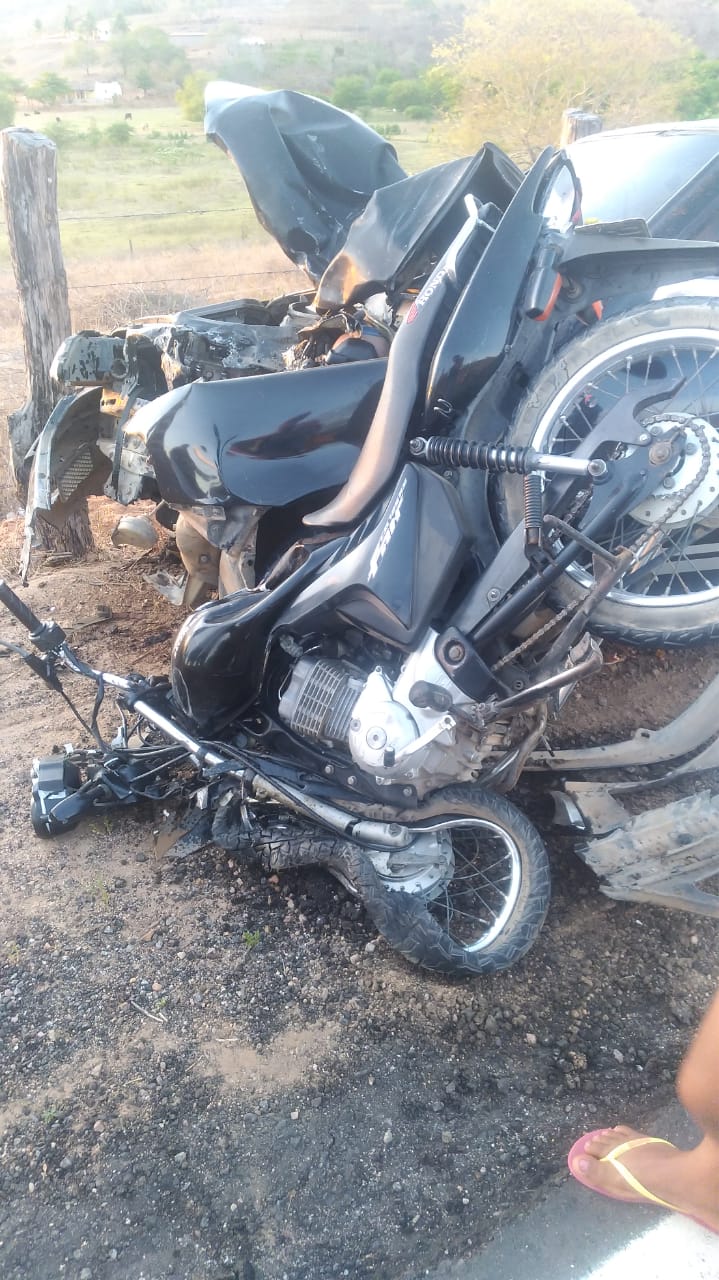 moto que era conduzida pelo jovem ficou praticamente destruída e a parte