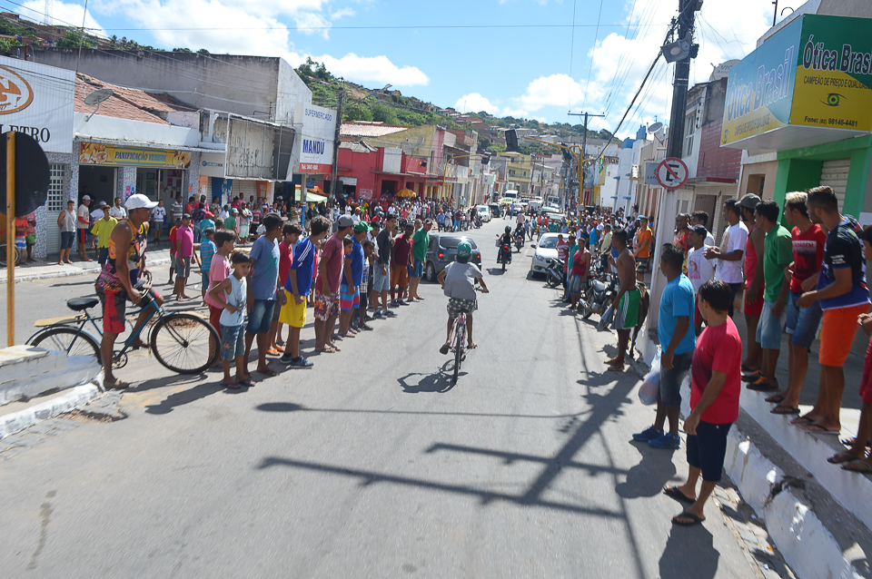 pedestres, ciclismo, corrida de saco, todas com premiações simbólicas de