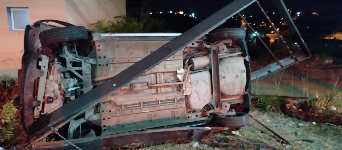 carro capotado na grande São Paulo. Dois bandidos renderam o motorista que