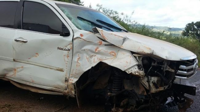 capotou uma Toyota Hilux, de cor branca e placa não anotada em um trecho da