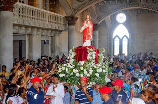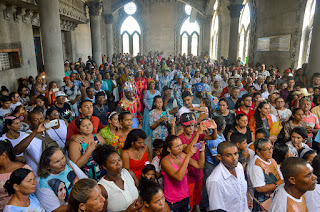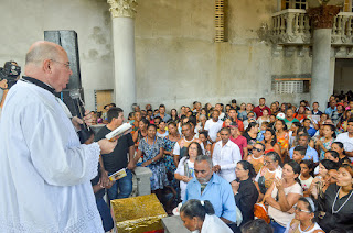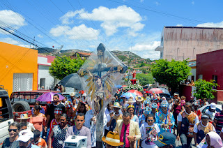 Teresinha jogou rosas e água benta para os fieis. Na festa também houve a presença