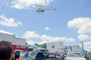 a procissão pelas ruas da cidade o helicóptero do grupo Funerário Santa