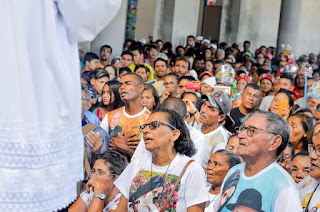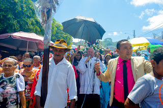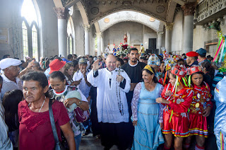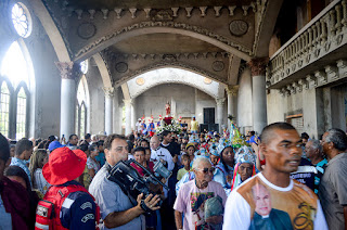 Teresinha jogou rosas e água benta para os fieis. Na festa também houve a presença