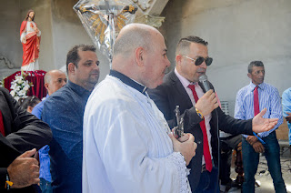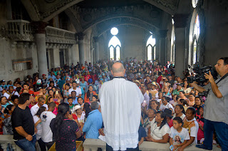 evento contou com um helicóptero que jogou rosas e água benta para as pessoas.