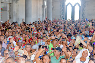 cânticos e melodias religiosas os romeirinhos vindos de todo o nordeste cantaram com o Padre no decorrer da romaria.